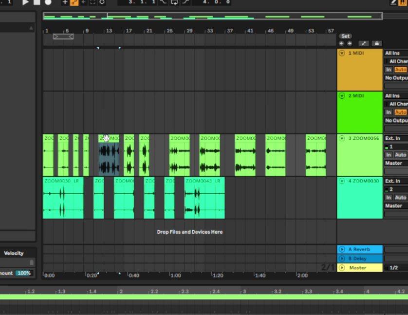 Ableton was gebruikt om de geluidseffecten te editen, waar ik met de hulp van een vriend (die kennis heeft in het gebruiken van het programma) de geluidseffecten klaar mee kon maken tot een bruikbaar product. Hierin konden we makkelijk de geluiden bij elkaar toevoegen, de bonken en andere ongewilde geluiden eruit halen, en de volume van de geluidseffecten op een goed niveau brengen.
