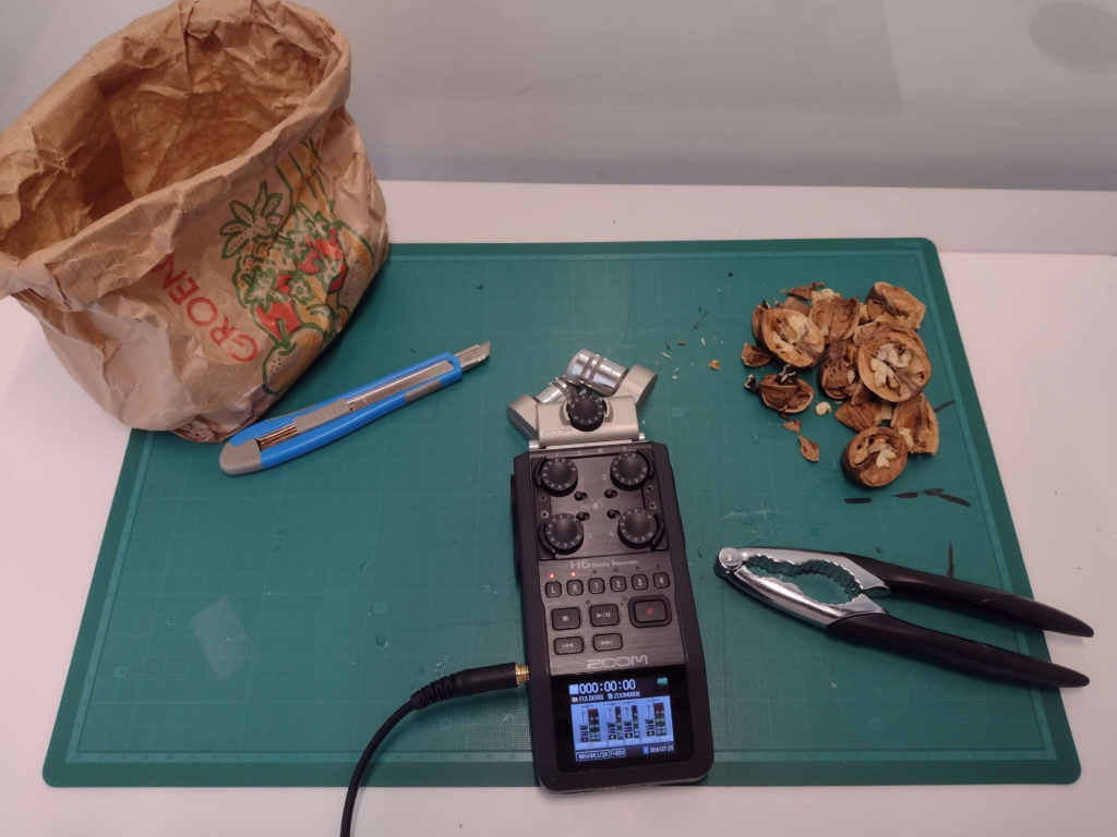 “Vegetable slaughter” is een ding wat ik vaak genoemd zag in voorbeelden voor het doen van foley, oftewel groente en fruit kapot aan het maken om geluidseffecten mee te maken. Hiervan uit heb ik dingen zoals walnoten, watermeloen en bleekselderij geprobeerd. Je zou hiermee geluidseffecten maken die klinken als of je botten kraakt of iemand steekt met een mes met de watermeloen.