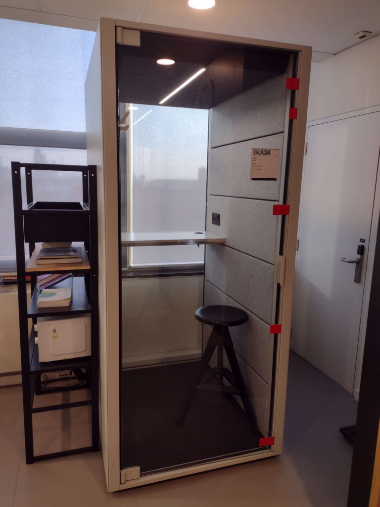 Het opnemen van de geluidseffecten kon natuurlijk niet gewoon overal, veel plekken hebben een achtergrond ruis die het opnemen van dingen heel lastig maakt. Ik had moeite om een plek te vinden die soundproof was voor het opnemen van dingen, tot dat ik de geluidsdichte hokjes op school herinderde: