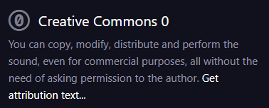 Uiteindelijk koos ik ervoor om CC0 1.0 Universal te gebruiken als licentie, deze geeft vrij toegang om mijn geluidseffecten te gebruik voor elke doel eindes, zonder toestemming te vragen of credit te geven. Om zo het gebruik voor gebruikers van de sound effecten het makkelijk te maken.