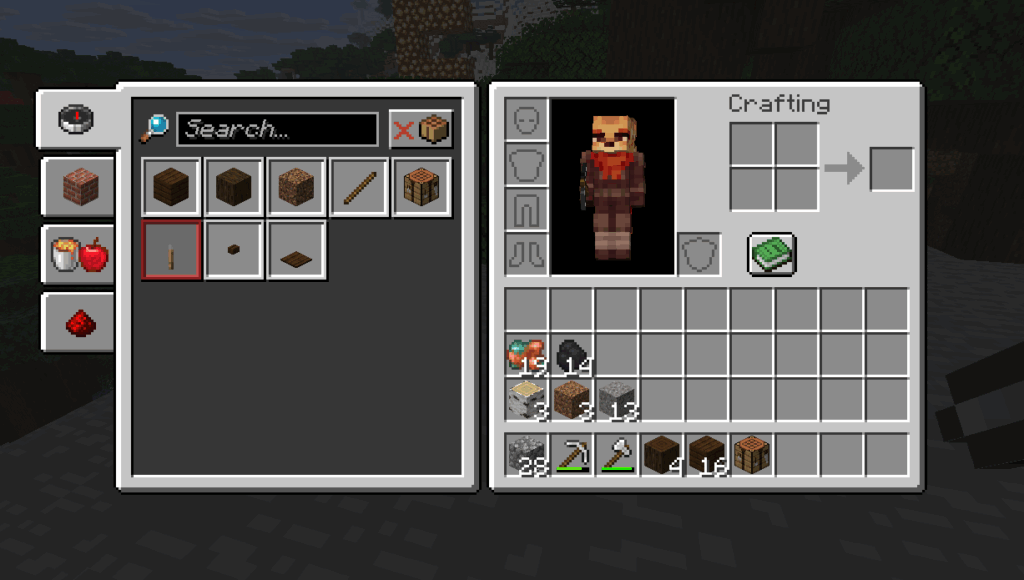 De UI van Luanti (Asuna) voor de inventory, vergelijken met die van Minecraft (Java versie)